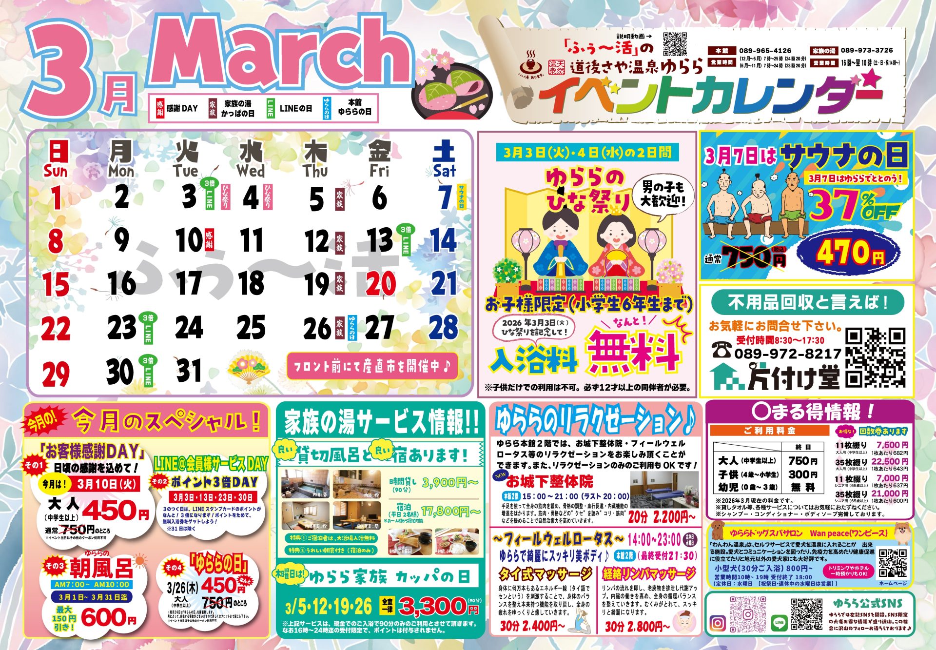 自然からのお恵み(天然温泉)の提供を通して、ゆららも同じお気持ちで願います